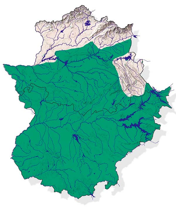 Ibérica. En Extremadura vive en ríos y charcas de las
