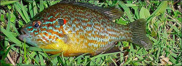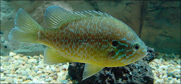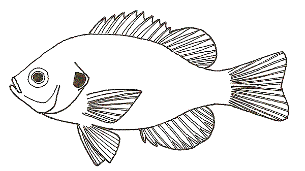 cabeza y una mancha negra y roja en el opérculo. Tiene